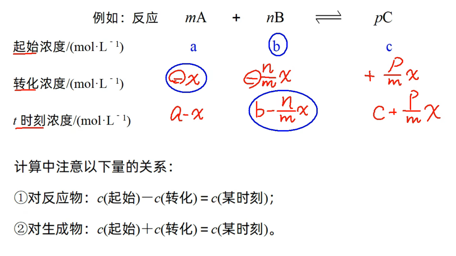 概念(不强求用浓度表示, 也可以用物质的量或分压表示):